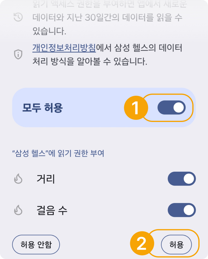 2. 걷기/이동 거리 측정, 맞춤 콘텐츠 제공 등 위치정보를 이용하며 GPS 오차가 발생할 수 있음.